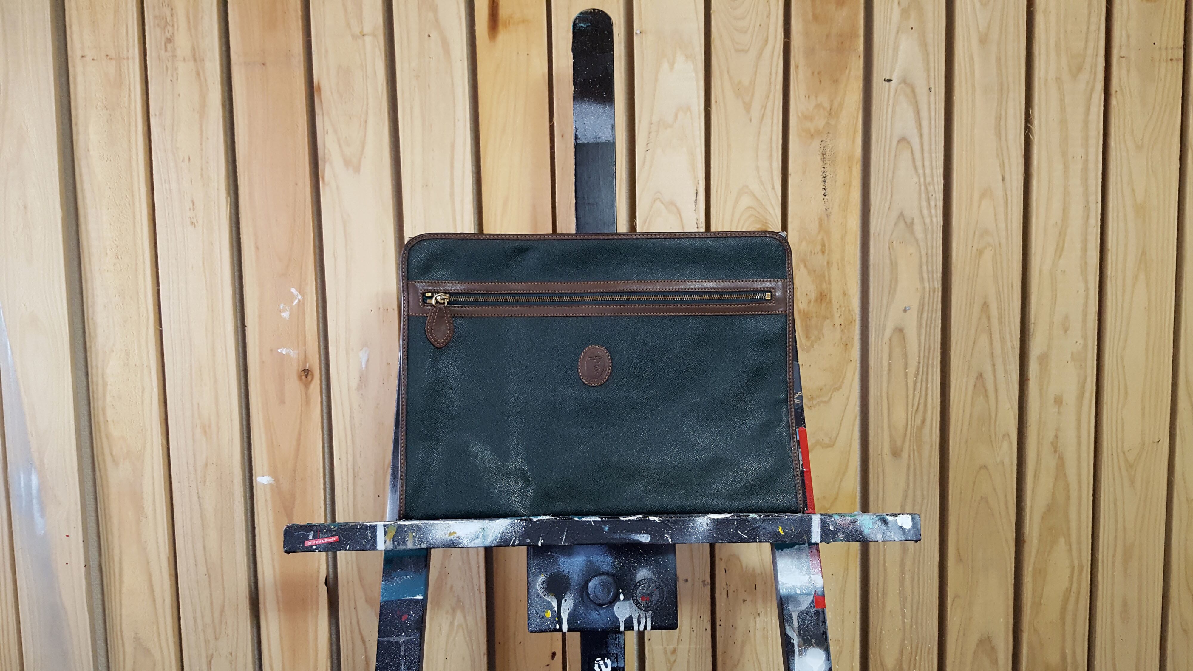 男性も女性もお使いいただけるシックなクラッチバッグにペイント◎