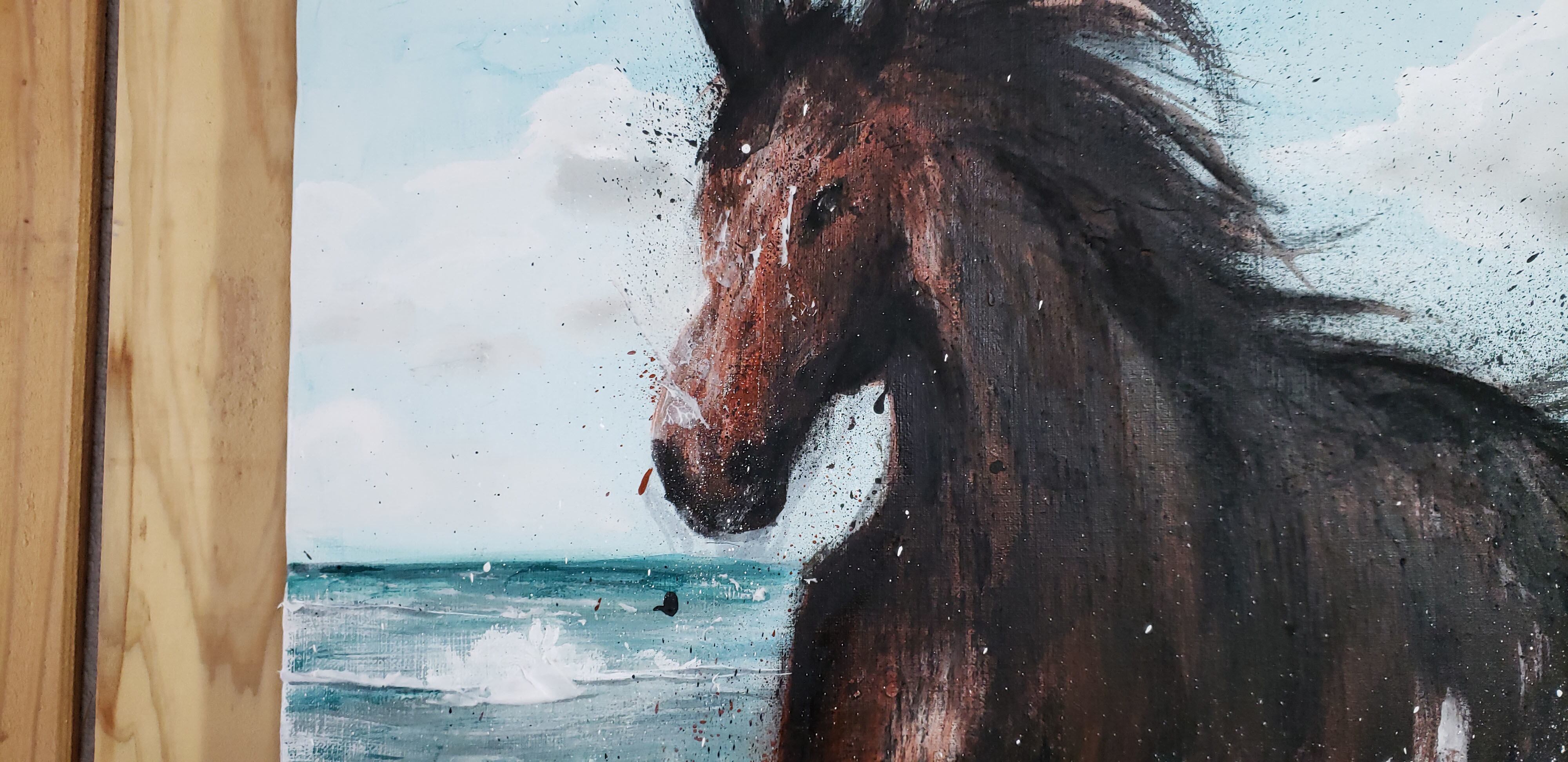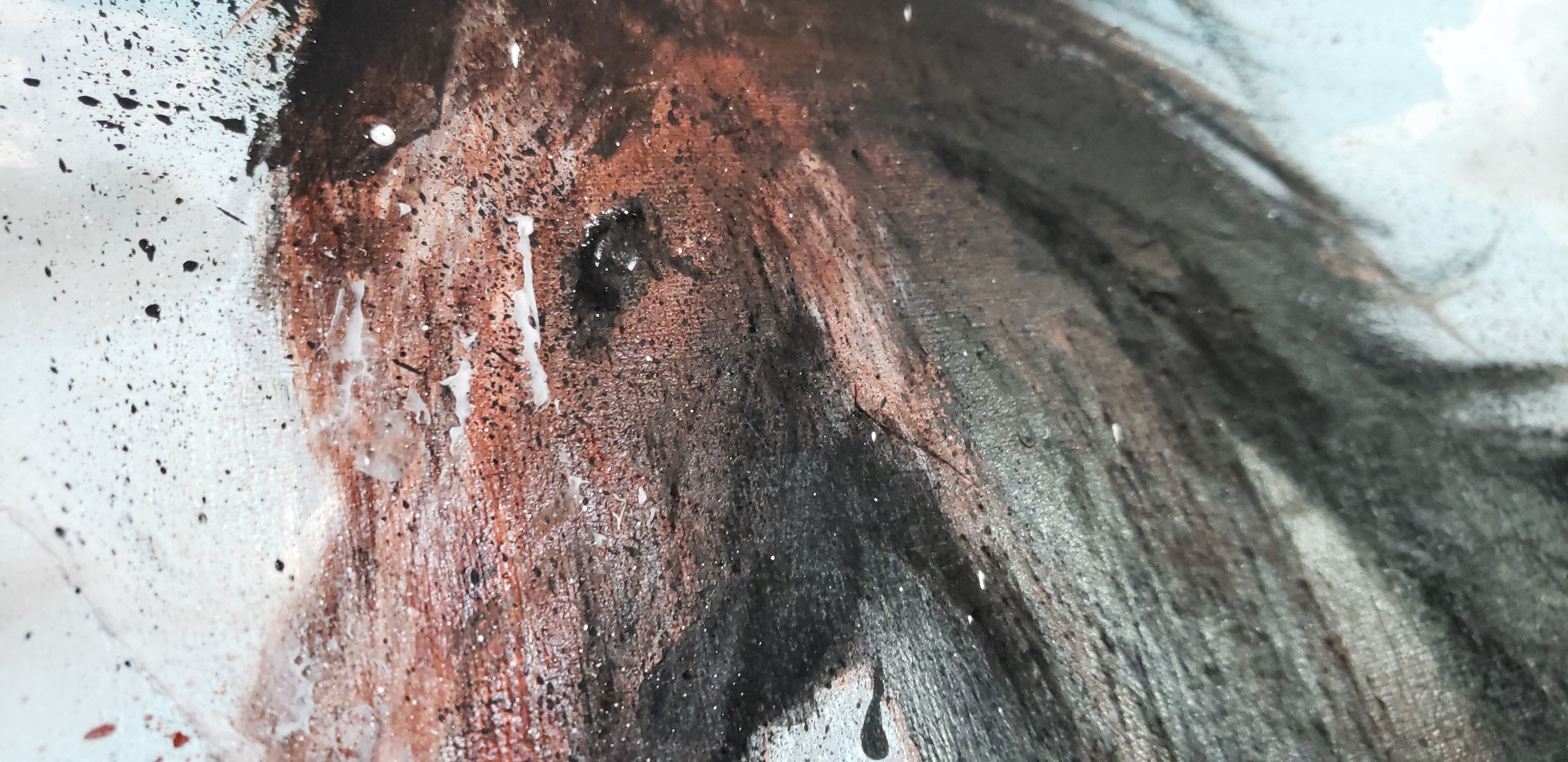 カンバスにアクリル、アクリルスプレーインキ、木炭
