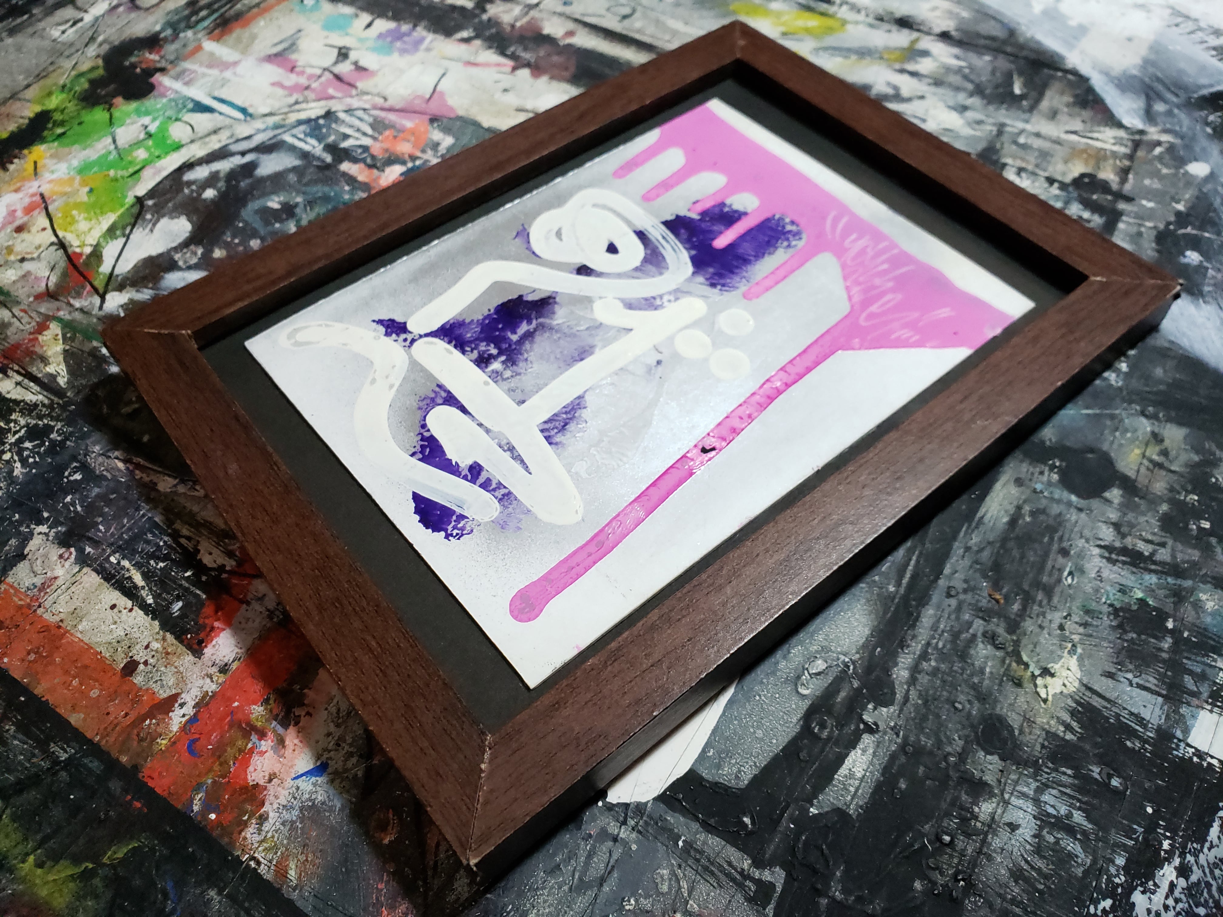 画用紙にペンキ、ペン、スプレー