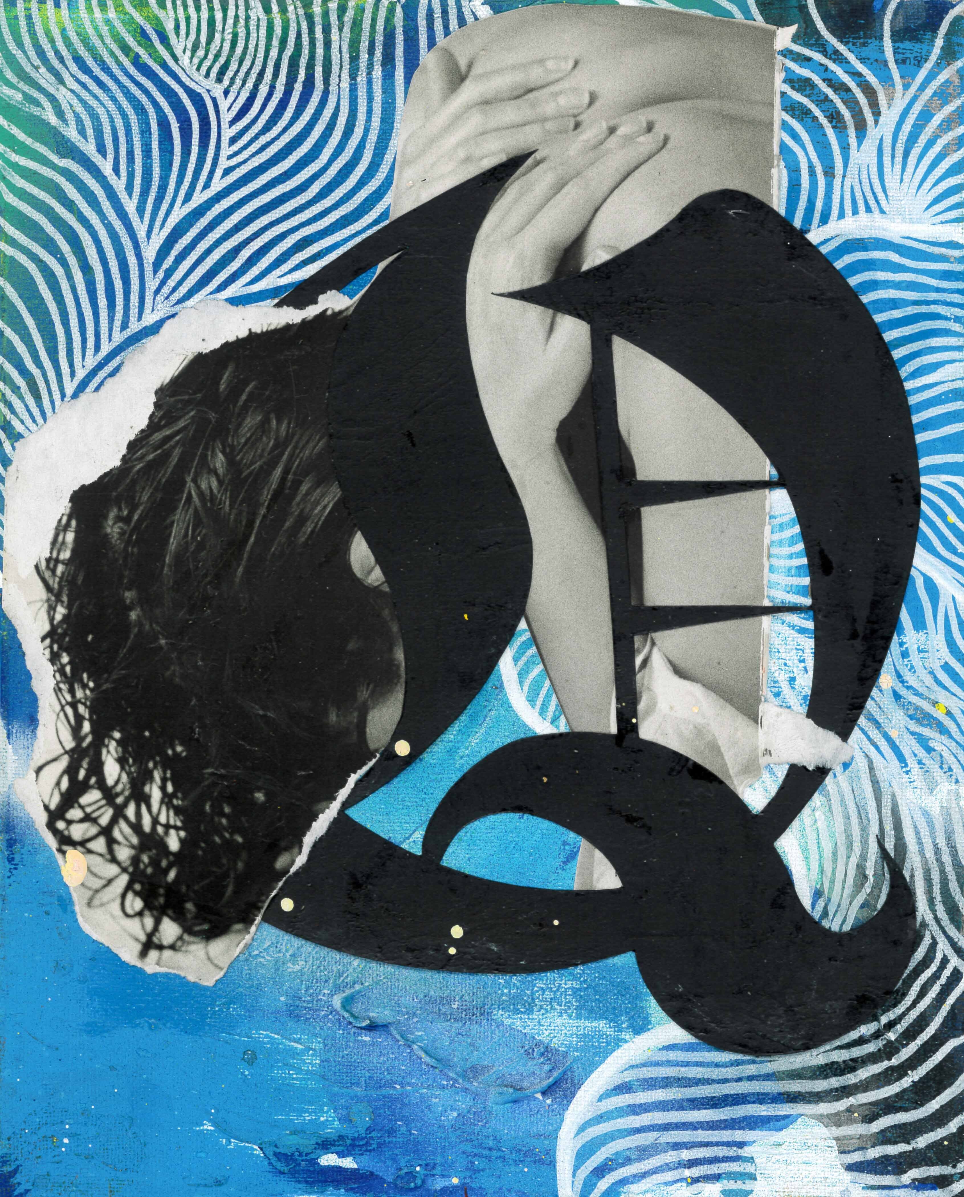 カンバスにアクリル絵具、切り絵